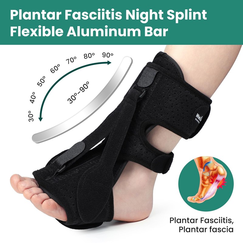 - 【Why Do You Need Plantar Fasciitis Night Splint 】Plantar fasciitis night splint relief from plantar fasciitis, foot drop, heel tendonitis, flat arches, heel spurs, or Achilles tendonitis, allowing you to return to your daily activities with greater ease and comfort. Reducing morning pain from plantar fasciitis. Designed to be lightweight and portable, the night splint can be used continuously during the night to accelerate the healing process.