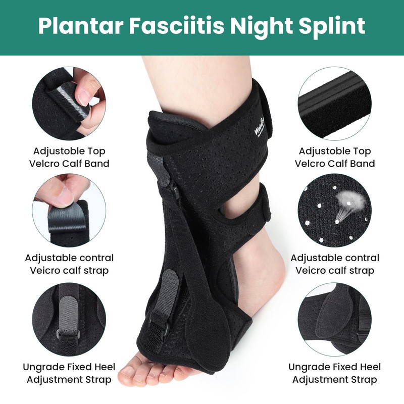 - 【Skin-Friendly and Reusable 】Our Plantar fasciitis night splint is made from high-quality, durable elastic fabrics that are lightweight and very breathable. Night splint or achilles tendonitis brace designed with a soft foam padding lining that provides maximum comfort and cooling to the dorsal position. Providing a hygienic and reusable solution for individuals experiencing plantar fasciitis and seeking adjustable orthotic stretcher support.
