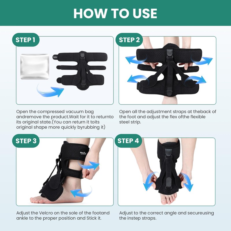 - 【Easy to Use】Our plantar fasciitis splint adopts a simple design principle, Only 4 small steps are needed: 1 Bend the aluminum strip to the best angle of 85 ° - 90 °; 2. Wrap your front foot; 3. Wrap your calf; 4. Adjust the belt to the tension you want and fasten it. The wearing instruction video that comes on the box is easy to watch.