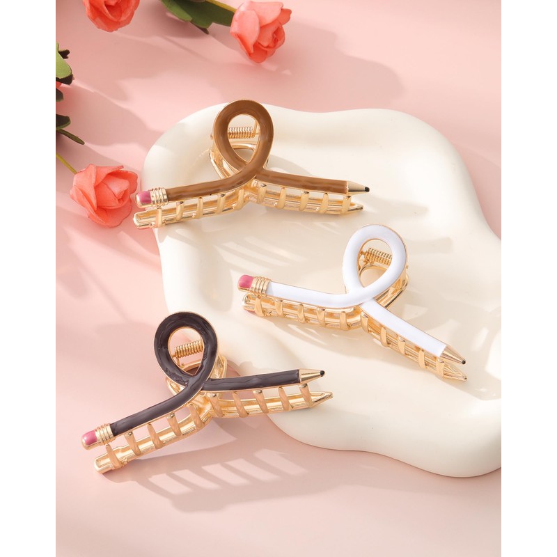 WELROG 3PCS Pencil Hair Clips for Women - Funny Teacher Claw Clips for Thick Thin Hair Back to School Hair Clips