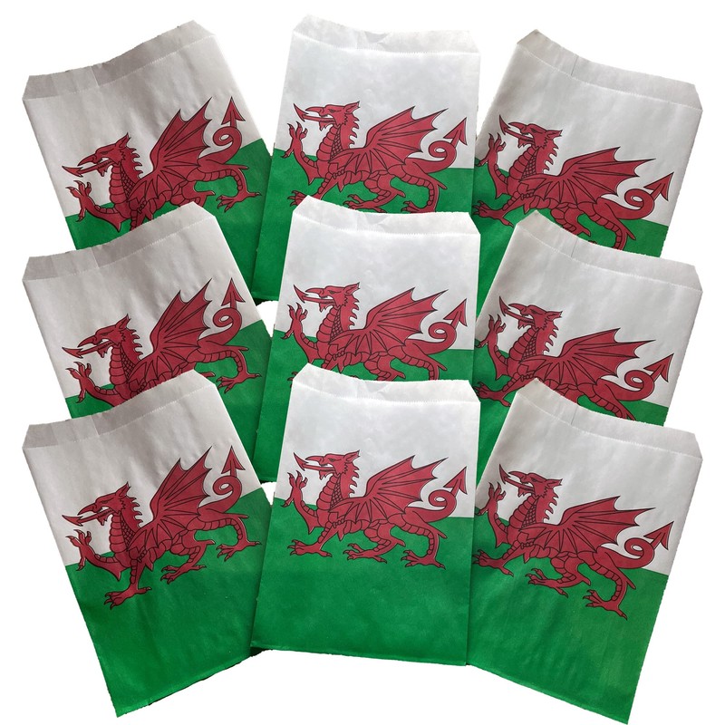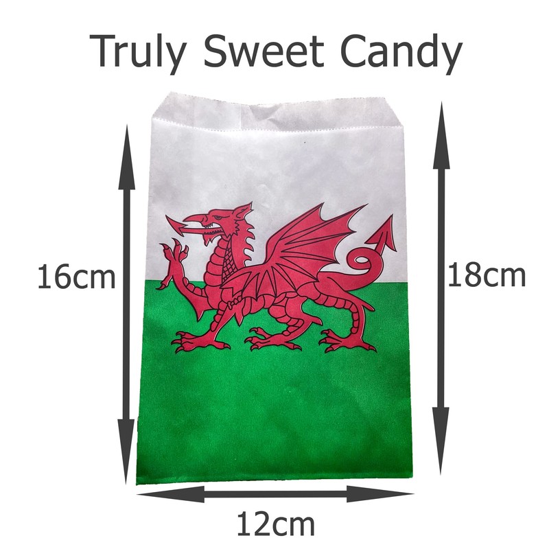 Welsh Flag Design Paper Bag ideal for counter bag, party bag, candy bag, gift bag (100)