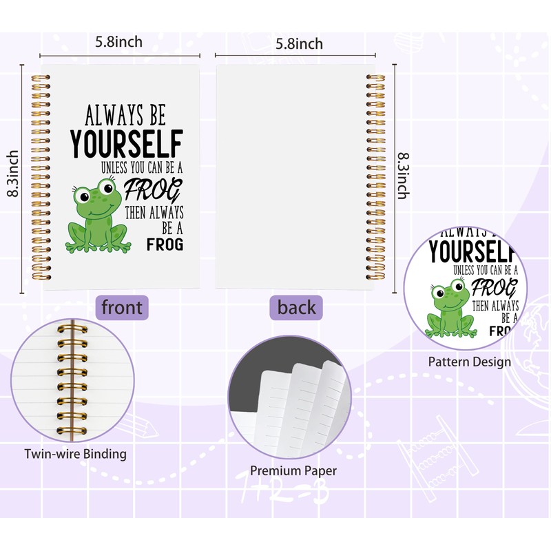 Welshower Funny Frog Inspirational Spiral Notebook Journal, Gifts for Frog Lovers Notebook, Always Be Yourself Motivational Positive Affirmation Journal, 5.5x8.3 Inch