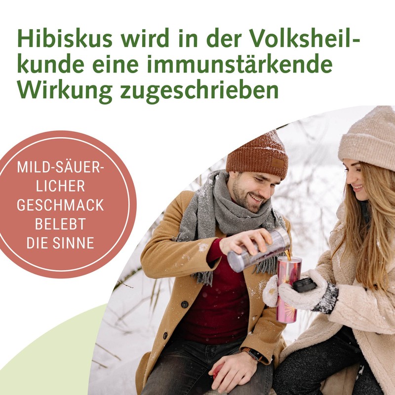In vielen Gärten leuchten im Spätsommer die großen Blüten des Hibiskus. Der Strauch aus der Familie der Malvengewächse ist insbesondere wegen seiner dekorativen Blütenkelche als Zierpflanze bekannt. Die Blüten sind nicht nur schön anzusehen, sondern überzeugen auch mit ihrem aromatischen Geschmack - und das zu jeder Jahreszeit! Im Frühling und Sommer schmeckt der Bio-Hibiskus-Tee als kaltes Erfrischungsgetränk, das den Durst an heißen Tagen löscht. Im Herbst und Winter wärmt der heiß aufgebrühte Bio-Tee von Innen heraus. Zusätzlich unterstützt der hohe Vitamin-C-Gehalt der Hibiskus-Pflanze das Immunsystem, was insbesondere in den kalten Jahreszeiten von großem Vorteil ist.