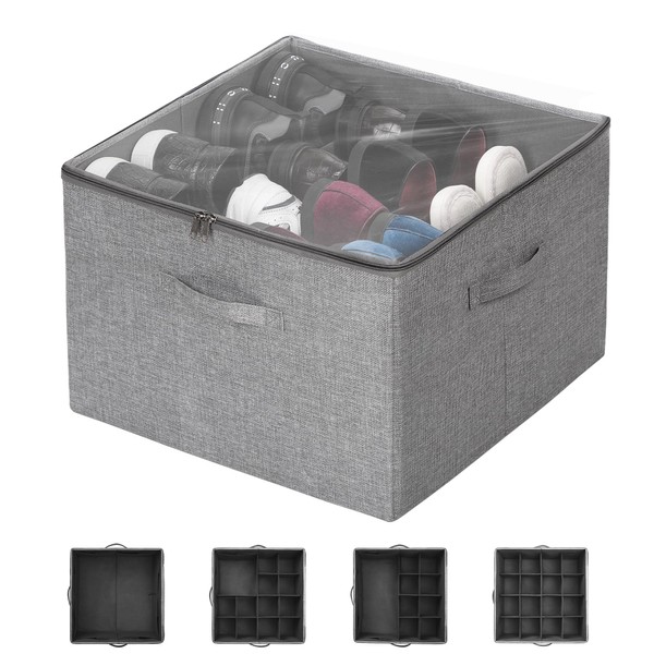 - Adjustable Dividers: With adjustable dividers, the size of the storage compartment can be adjusted according to your shoe sizes, multifunctional storage box are easily store shoes, clothes, boots, toys, e your house from clutter to neat and tidy with ease.