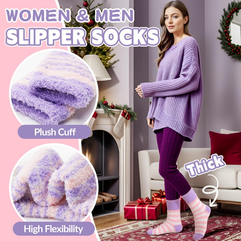 • 【High Quality Material 】These fuzzy socks for women & men are crafted with a blend of high-quality materials, including super thick fluffy on the inner side. The soft fabric ensures no itching issues and has comfortable touching, which makes feet more comfortable in winter!