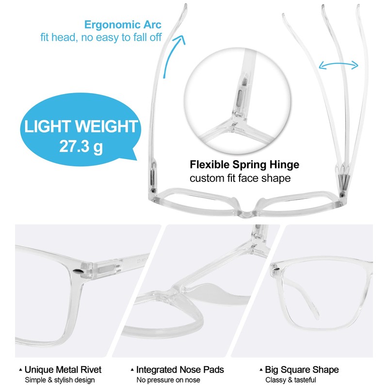 WEMOOTANTS Large Bifocal Reading Glasses Men Blue Light Blocking Readers with Spring Hinges 1.0 1.25 1.5 1.75 2.0 2.25 2.5 2.75 3.0 3.5 (Clear, 2.00)