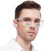 - Bifocal readers 2.0 with clear top - Functional men's bifocal reading glasses for close and far vision dual-use. Look down through 2.0+ reading zone at the bottom to read small words on book or phone super clearly. Look up through clear no magnification area on the top for watching TV, driving, and something in the distance. WEMOOTANTS bifocal glasses for men free people from taking readers on and off to see.