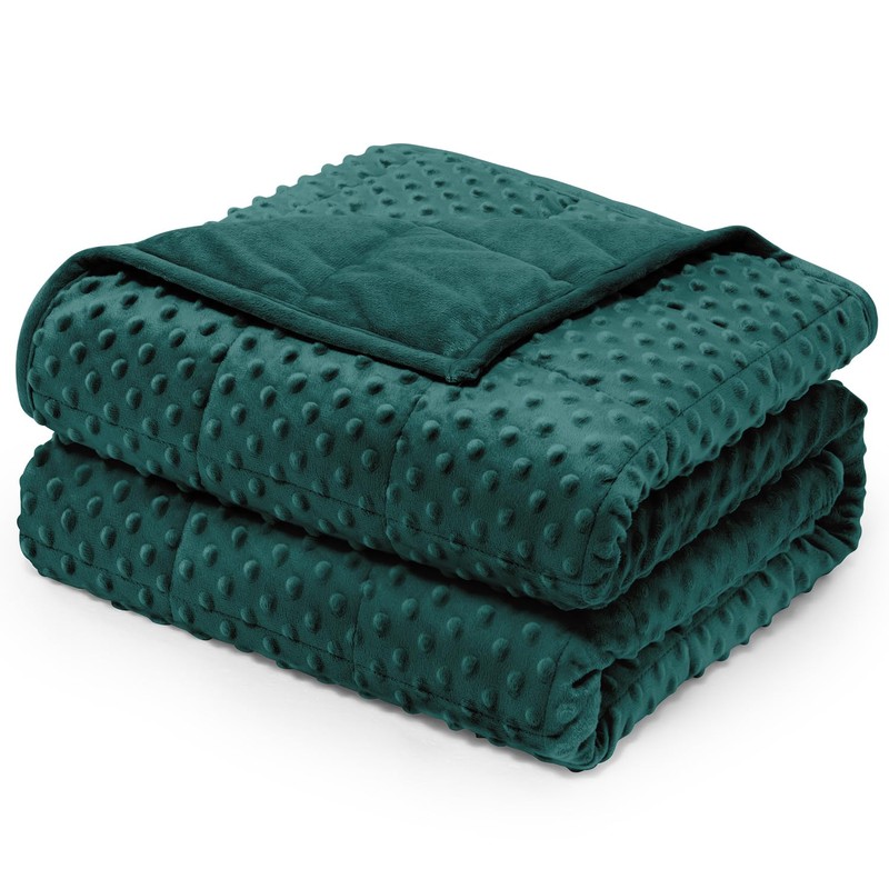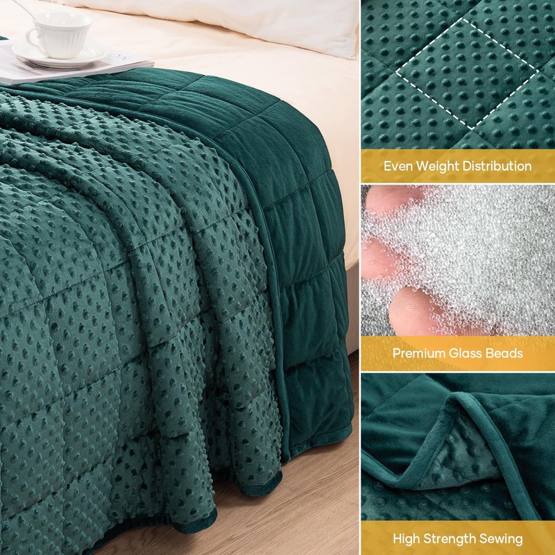 Wemore Minky Dot Weighted Blanket for Adults Queen Size 20 lb, Soft Heavy Blanket for Stress Relief and Sleep Promotion, Breathable Blanket for All-Season with Glass Beads, Dark Green 60 x 80 inches