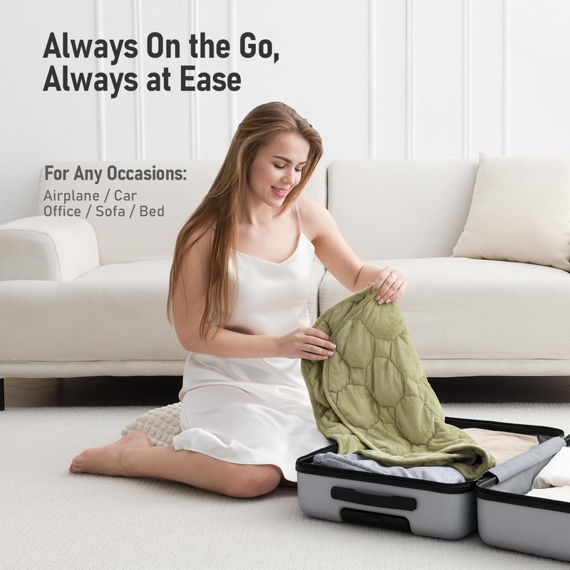 - Travel-Ready Lap Blanket: This small weighted blanket measures 24 x 29 inches and weighs 7 pounds, making it easy to carry. You can simply roll this travel weighted blanket up and tuck it into your backpack or suitcase. Wherever your journey takes you, this trusted companion will lull you into a peaceful sleep and guide you to the pinnacle of relaxation.