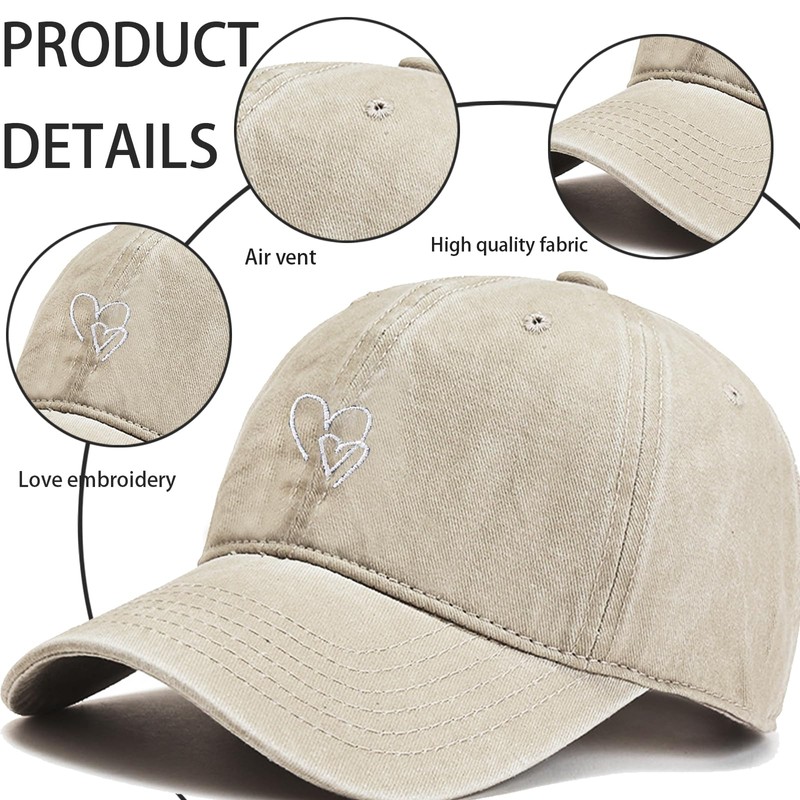 - Trendy design and premium quality: this retro women's baseball cap style with casual love embroidery and washed distressed look gives any outfit a cool touch. Made from high-quality cotton for optimal wearing comfort - ideal as a cap for men or women