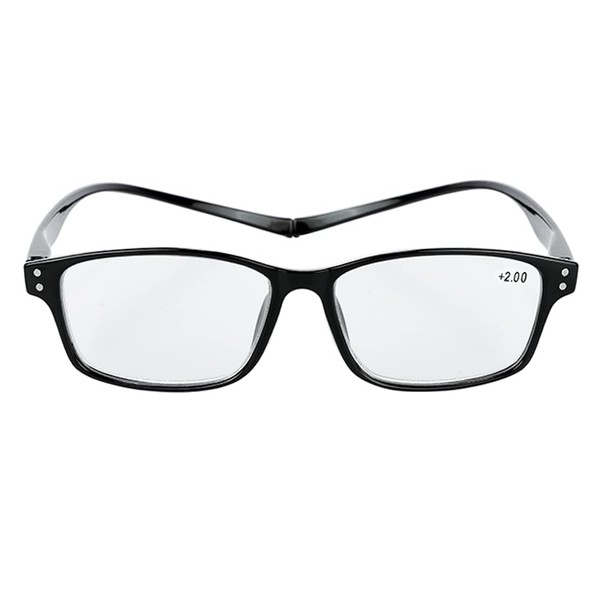 [WENDA] マグネット首掛け老眼鏡 磁头老花镜 クリア老眼鏡レンズ/ブルーライトカットレンズ老眼鏡 (Black, 6.0)