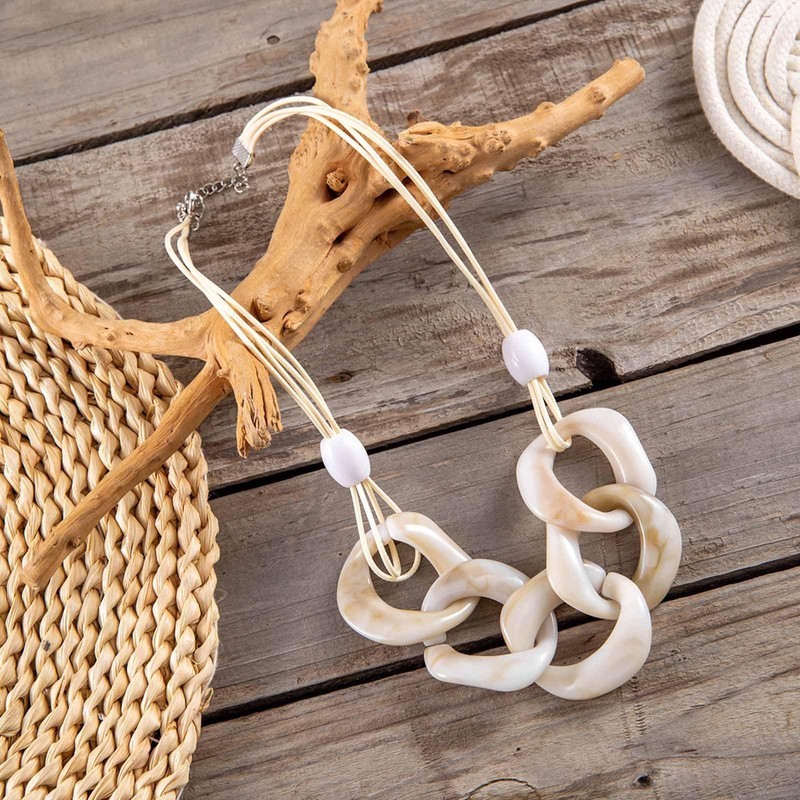 Wendalern Chunky Acrylic Statement Necklace Irregular Resin Round Circle Bib Necklace Layered Braided Rope Link Chain Necklace Cuban Chain Acrylic Oval Collar Necklace Fashion Jewelry for Women