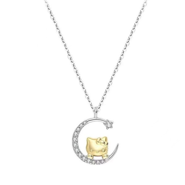 - Pretty cat on moon necklace. If you have any questions, please feel free to contact us by email. We will reply within 24 hours and offer appropriate services. We look forward to your feedback.