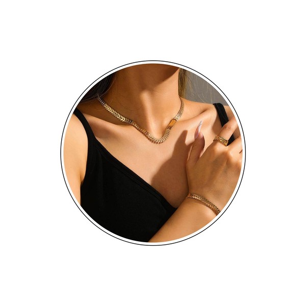 - Fishbone choker necklace wheat chain bracelet ring is made of high-quality environmentally friendly alloy and strict metal plating process, good durability and colour retention, hypoallergenic and exceptionally comfortable to wear.
