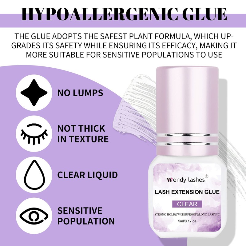 Wendy Eyelash Glue for Lash Extensions: Supply to Lash Artists, Extra-Strong, 1-2s Fast Drying, Strong Hold, Clear, 5ml