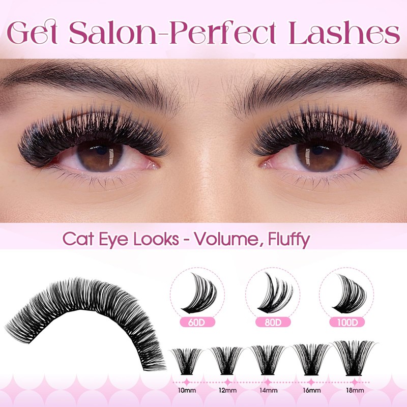 - Get Salon-Perfect Cluster Lashes at Home: Achieve a flawless, high-end lash look in minutes with our easy-to-use cluster lash kit. Perfect for busy women who want gorgeous, long-lasting extensions without salon prices or hassle.