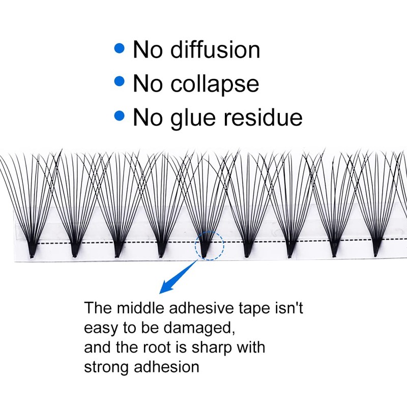 - 100% handmade: Unique craftsmanship to ensure rootless pointed bases. The Ultra-thin roots can connect the fans with natural eyelashes better. Lash connection points are seamless, and the grafting effect is volume and fluffy.