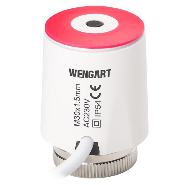 Wengart Thermoelectric Actuator WG2208,On/Off Status Visible,Work for Underfloor Heating (Normally Closed-230V-Red Head)