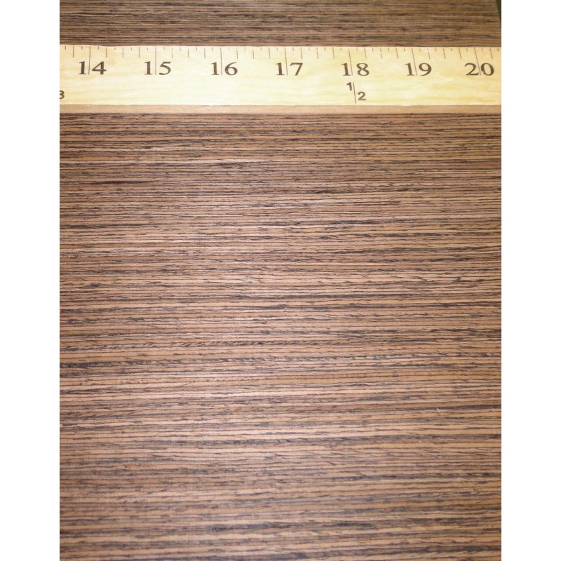 African Wenge composite wood veneer 12" x 9" with wood backer 1/25th" thickness. "A" grade quality. ONE piece per price. All pieces are cut from 96" long pieces (shown) and orders for more than one will come in one continuous piece. Some photos shown wet with water or with finish to show color and grain more accurately. Grain runs across 12" direction and with 9" direction. You can also buy this product by the full 96" length. Composite is real word that is dyed and cut in a manner to make each sheet consistent. Finishes and laminates like any other backed wood product.