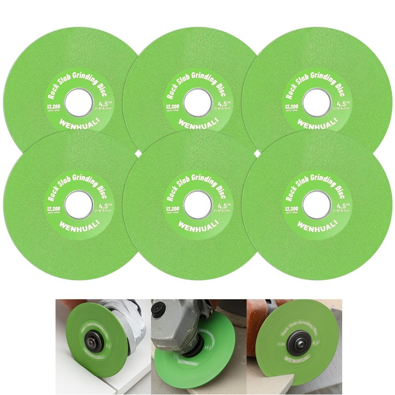 WENHUALI 4.5 Inch Diamond Rock Slab Grinding & Cutting Disc - 6 Pcs Angle Grinder Blade with 7/8" Arbor for Marble, Quartz, Ceramic, Glass, Tile, Jade & Rock Slab Trimming