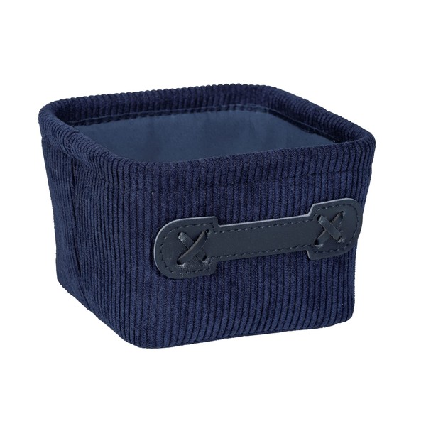 • Box contents: 1 x WENKO Anela Square bathroom basket in elegant dark blue in corduroy design made of 100% polyester with faux leather handle for storing utensils and accessories, dimensions (W x H x D): 14 x 9 x 14 cm.