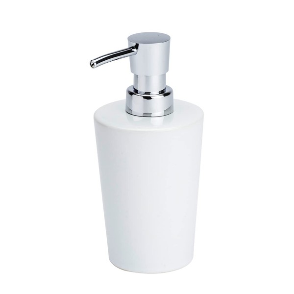 WENKO Coni Soap Dispenser, Ceramic, White/Silver, 9.2 x 7.8 x 16.4 cm