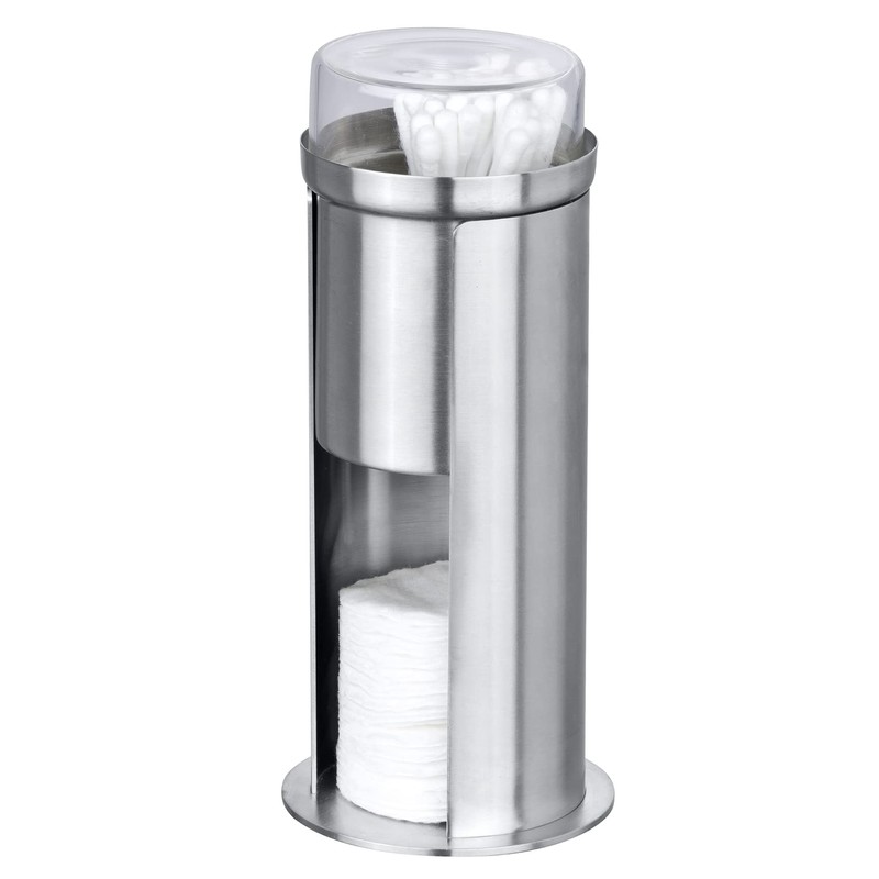 WENKO Cotton Pads Dispenser Firenze, Stainless steel, Silver matt, 7.5 x 7.5 x 18 cm