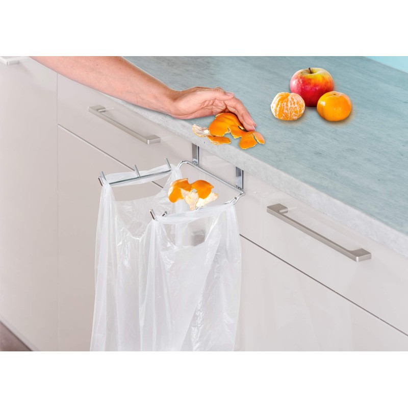 - Easy installation without drilling: the bin bag holder can be easily hung over all cabinet doors and drawers with a thickness of up to 2 cm - inside and outside.
