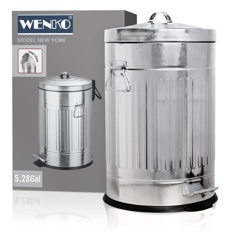 - HANDS-FREE: The 5 gallon trash can from WENKO includes a pedal which allows you to open it just by using your foot. This way you can dispose of your garbage without having to touch the trash bin and keep your hands clean