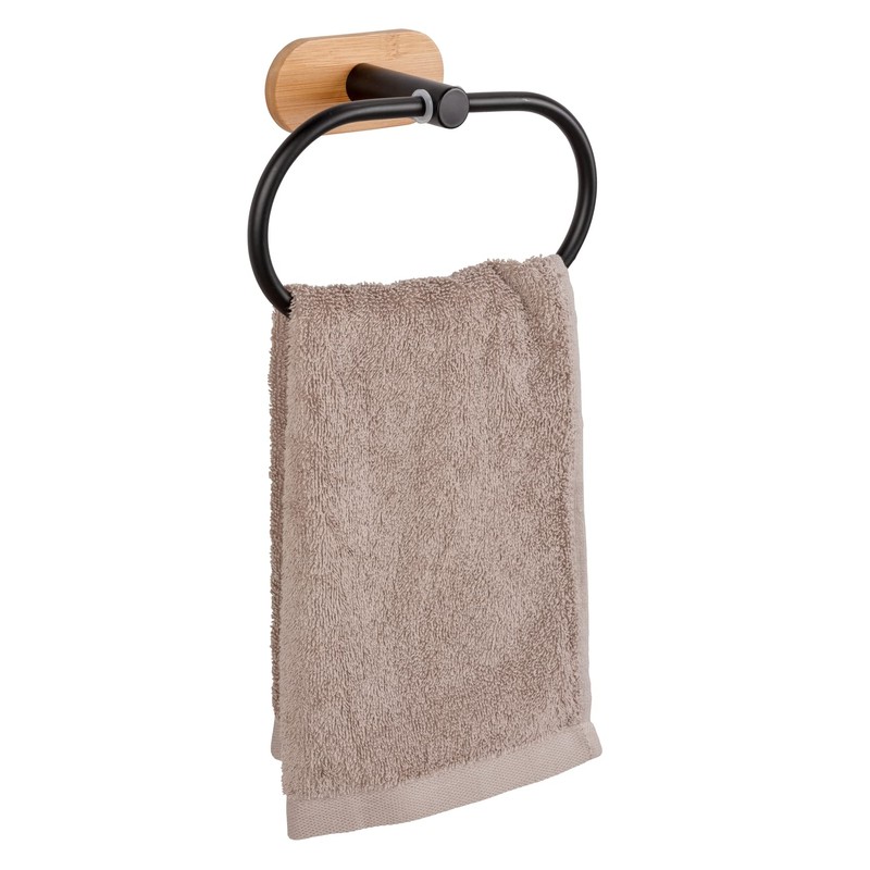 - Natural bamboo chic: the stylish Turbo-Loc Orea Bamboo towel ring sets clear accents in industrial style in the bathroom. The ring made of matte black stainless steel combines WENKO with natural bamboo. The material is absolutely on trend due to its naturalness.