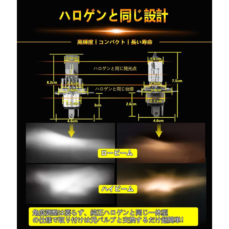 - Perfect light distribution. Compatible with new vehicle inspections. Based on the latest optical design, this H4/H19/HS1 compatible LED headlight is made to thin the light emitting area, where the luminous point is closer to the center and reproduces the filament position of genuine halogen bulbs, providing a wide range of light distribution and brightness. The low beam has a wide range of bright, clean cut lines. In addition, the light portion is uniform on the high beam, so the center of the light can be seen very far away. Increased safety, visibility and comfort for night driving. With this brightness, you won't be bothered with your oncoming vehicle! Compatible with car inspection standards, low beam front light for swirling
