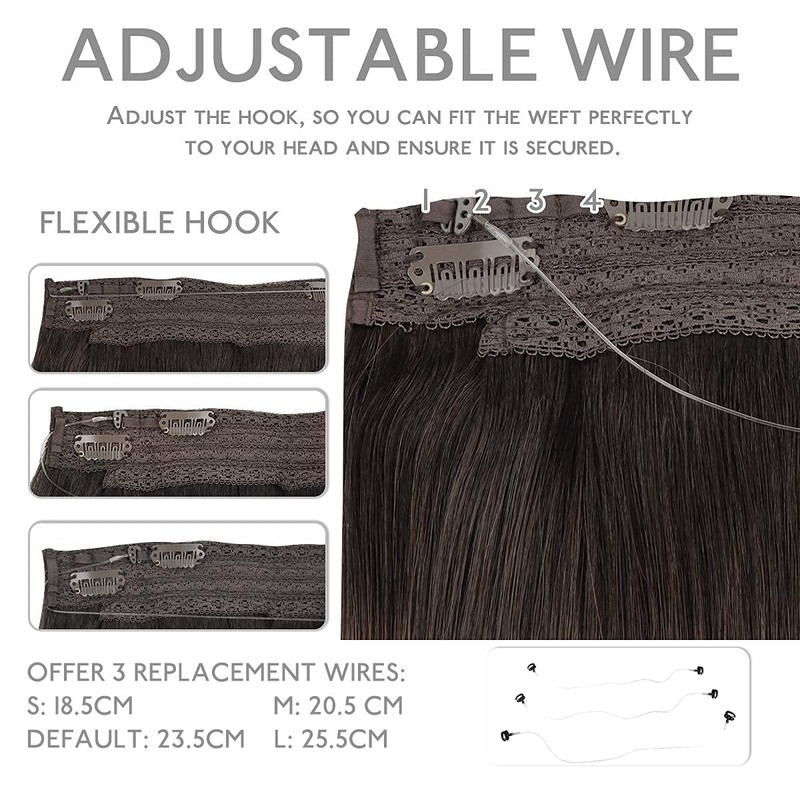 - Invisible transparent wire and lace weft: Wennalife real hair extensions can fit perfectly into your hair thanks to the adjustable invisible transparent wire and the clips at the lace weft. The 10 inch weft real hair extension is the most suitable length for the majority, it can prevent your ears from rubbing off the weft. Three replacement wires are included in the package