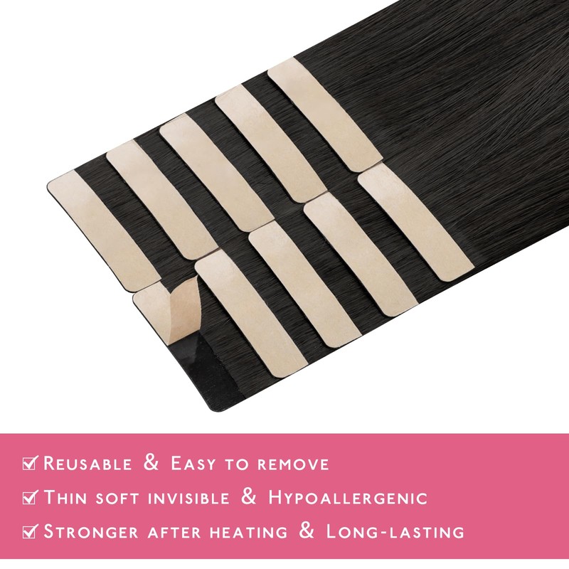 WENNALIFE Tape Extensions Real Hair Natural Black 10 Pieces Tape-In Extensions Real Hair 30 g 50 cm Invisible Hair Extensions Real Hair Invisible Straight Extensions Tape Refill Pack for Girls