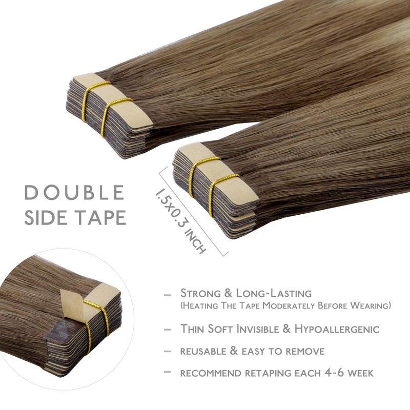 Double-sided high-quality tape, high strength & invisible, help the extensions blend perfectly with your hair.