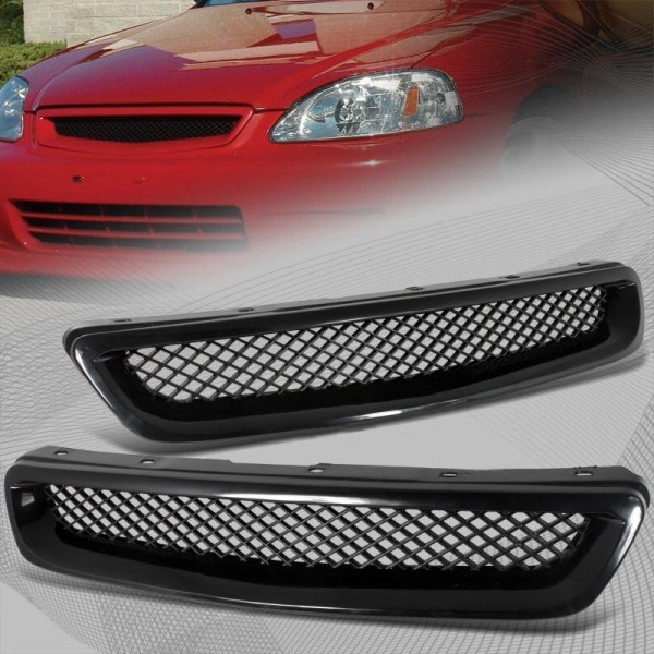WenQi Black Mesh ABS Front Hood Grille Grill For 1996-1998 Honda Civic EJ JDM Type R