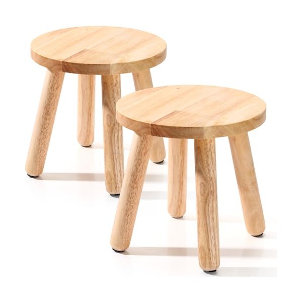 - Natural Solid Wood Material: manufactured with solid pine wood, our wooden stools are safe; Their rounded surface treated for easy clean up ensures that a quick wipe with a damp cloth will keep the stools looking as good as before
