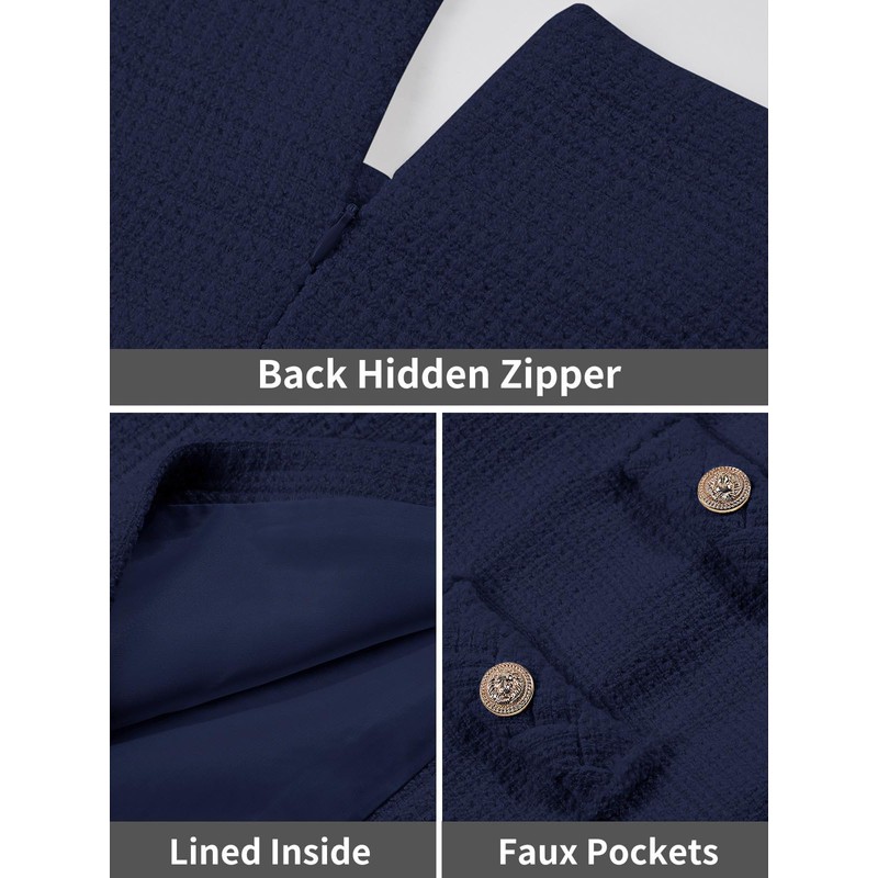 Wenrine Womens Tweed Mini Dress Short Sleeve Crew Neck Work Office Elagant Formal Summer A Line Dresses