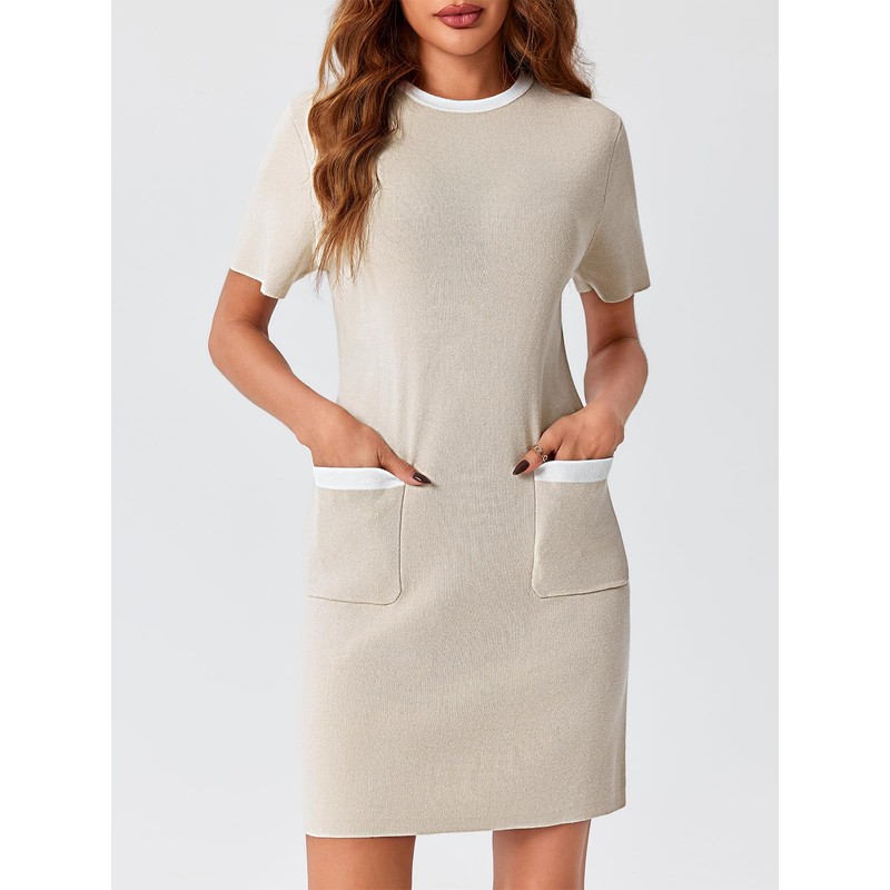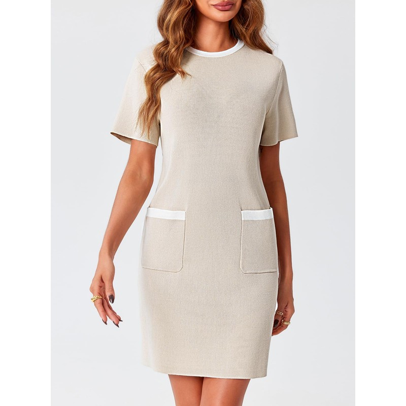 Wenrine Womens Work Dress Elegant Business Casual Short Sleeve Knit Summer Mini Dresses Khaki