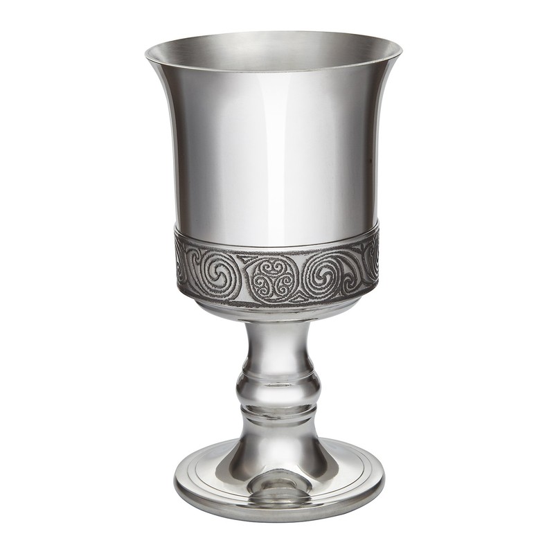 - Celtic Kells spun pewter goblet, bright polished pewter finish