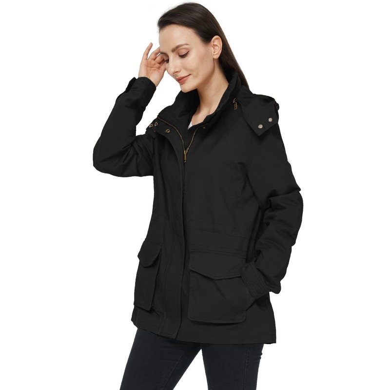 WenVen Women's Military Jacket Coat Spring Lightweight Cotton Anorak (Black, M)