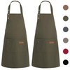 WENYA 2 Pack Kitchen Apron for Women, Unisex Adjustable Cooking Apron with Pockets, Canvas Waterproof Apron for Home Kitchen, Restaurant, Coffee House (Dark Green)
