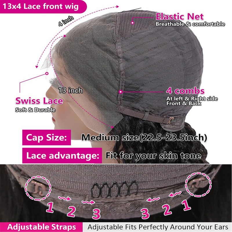 - Cap Size: Our glueless lace front wigs fits most head sizes (22.5"-23.5") with Two Adjustable Stretchy Elastic Straps and 4 combs. Strong and durable, comfortable to wear. Easy to take care of it