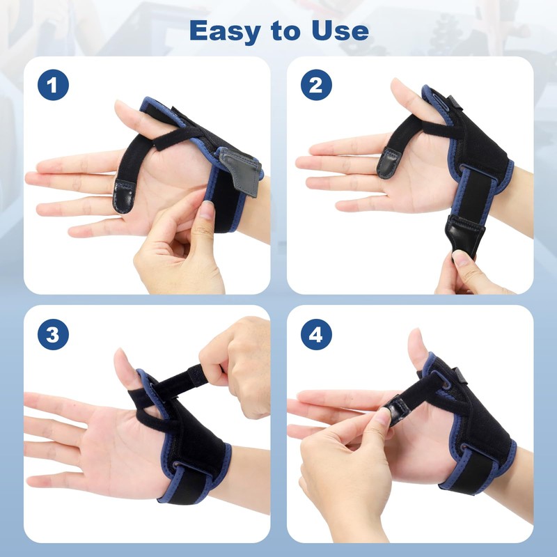 - 【Claw Shaped Splint Construction】This thumb splint is ergonomically designed and adapts to the natural curvature of the thumb. It provides targeted support for the first carpometacarpal joint (CMC joint) and thumb base, ensuring stability while maintaining the mobility of the remaining fingers. Their flexibility allows various daily activities such as typing, writing, sports, sewing, gardening, painting, cooking and even sleeping.