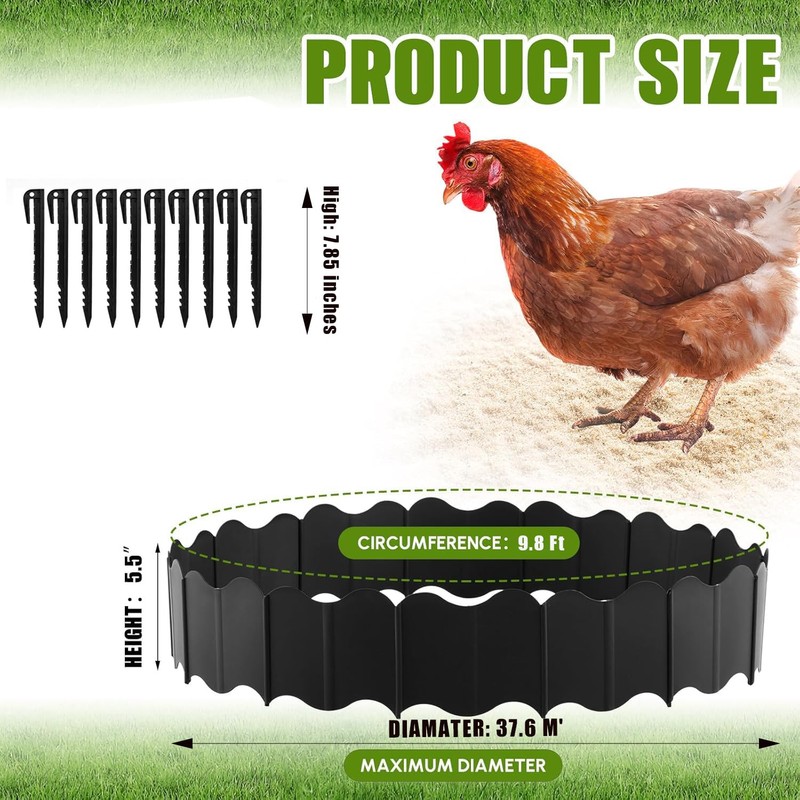 - Chicken Dust Bath Tub Set - the package includes 20(5.5*5.9 in) fences And 10(7.85 in hight) floor nails that can be effortlessly spliced into a large circle And use ground nails to enhance the firmness,You can use soil or other materials to surround the fence to prevent the lime from spilling offering an ample space for chickens to enjoy their dust baths.