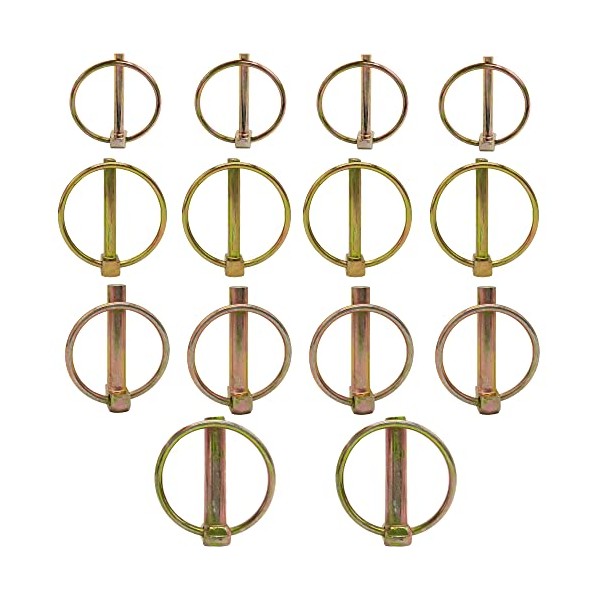 WeqeYent 14pcs M4.5/M6/M8/M10 Round Safety Retaining Pins Lynch Pin Assortment Kit Heavy Duty Trailer Lock Pin Fastener 3PT Hitch Clips for Farm Trailers Wagons Lawn Garden