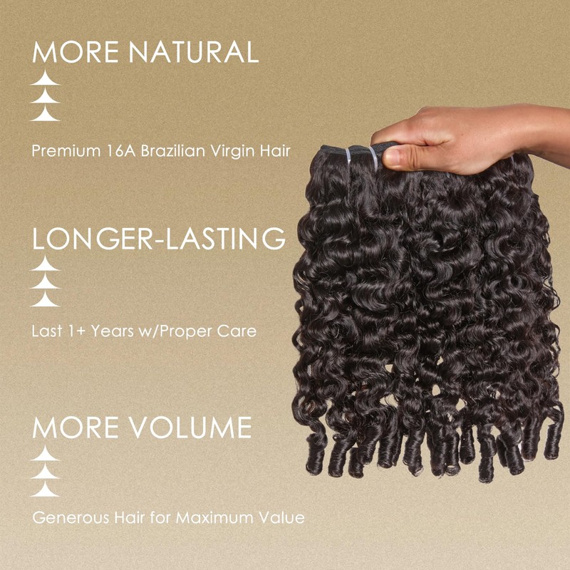- Unique Burmese Curly Look: Upgraded 6 spring curls per strand (vs. 4 on the market) give fuller volume, up to 35% less tangling and 40% less shedding.