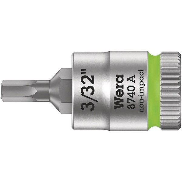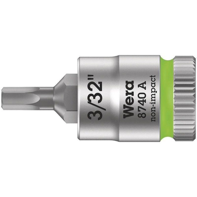 - Manufacturer Name: Wera / [Features] / Each size is separated by color, so you can easily select the size. / Unique HexPlus tip prevents slipping You can tighten the knurling with your finger. [Use] For tightening work. Specifications: Product Name: Wera 8740A Socket Hex-Plus SW3/32 / Model Number: 003381 / Insertion Angle: 0.25 / Total Length: 1.1 inches (28 mm) / Opposite Side Dimensions (inch): 3/32 / Blade Tip: Hex 3/32 / Type: Hex Plus (hexagon) / [Material/ Finish] / Special Tool Steel / Weight: 19 g/JAN Code: 4013288189837/