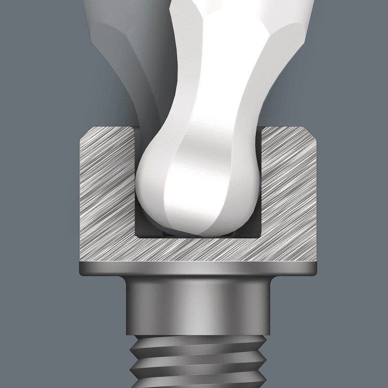 Wera l-keys with finger-protecting plastic sleeves for Imperial socket head screws. This means they are ergonomic and pleasant to grip even in cold temperatures. The hex plus profile offers a greater contact surface in the head of the screw. The notching effect is therefore reduced to a minimum and damage to the screw head more or less eliminated. The ballpoint on the long Arm allows dependable working even in difficult installation situations. The black laser surface treatment provides outstanding surface protection, even against corrosion, and a long service life. Laser-engraved and thereby wear- resistant size markings on the l-keys for Rapid accessing.