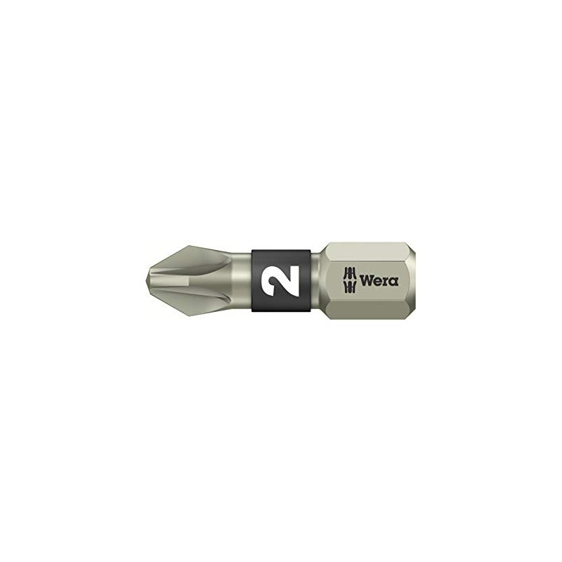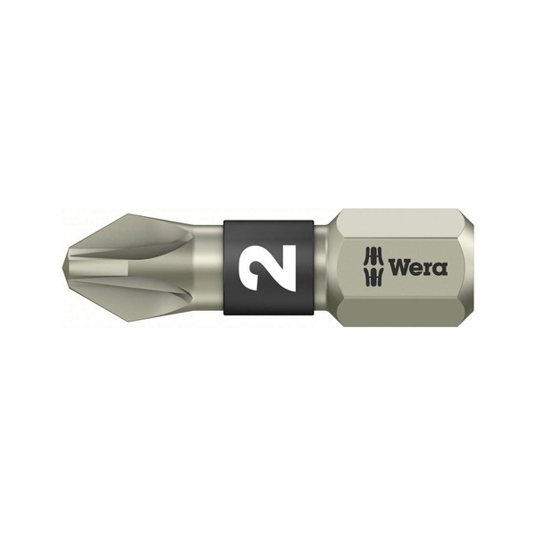 WERA 073614 Vera Torsion Stainless Steel Screwdriver Bit for Pozidriv Screws, Insertion 0.25 inches (6.35 mm), Blade Size PZ2, Total Length: 1.0 inches (25 mm)