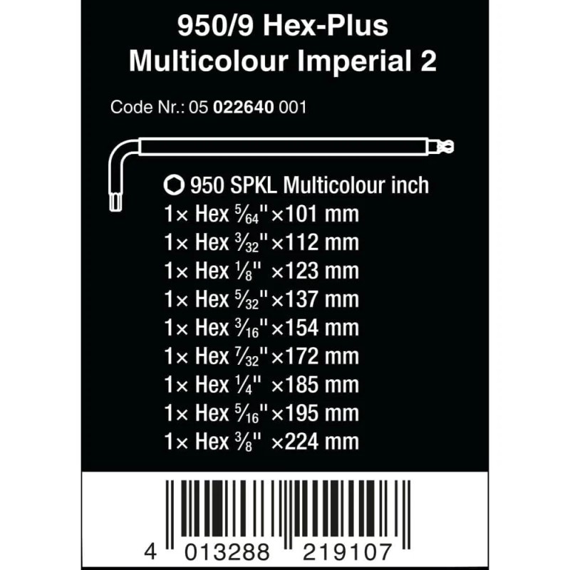 Wera 950/9 Hex-Plus Multi-color SAE Standard L-Key Set BlackLaser (9 Piece) NEW